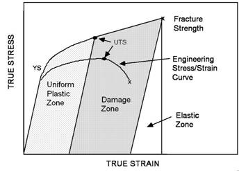 Engineering Stress Strain curve showing the two regions evaluated by the NanoSolutions SED model. |
