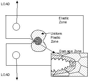 Based on the “Theory of Ductile Fracture” by GE Bockrath and JE Glasco, the method measures the strain energy under the full range stressstrain curve. Two portions of the curve are evaluated separately, the uniform plastic region (that portion of the curve before necking occurs) and the damage zone (that portion of the curve after necking starts). The strain energy density for each portion of the curve is then related to the stressstrain field at the crack tip to estimate the fracture toughness of the material. The method is most effective at predicting Critical Fracture Stress under uniform tensile conditions (such as cylindrical pressure vessels) typically modeled as center cracked panels although it can be used to estimate KIc. The method has the advantage of predicting fracture stress when global stresses greater than the material’s yield stress as well as under elastic conditions. |